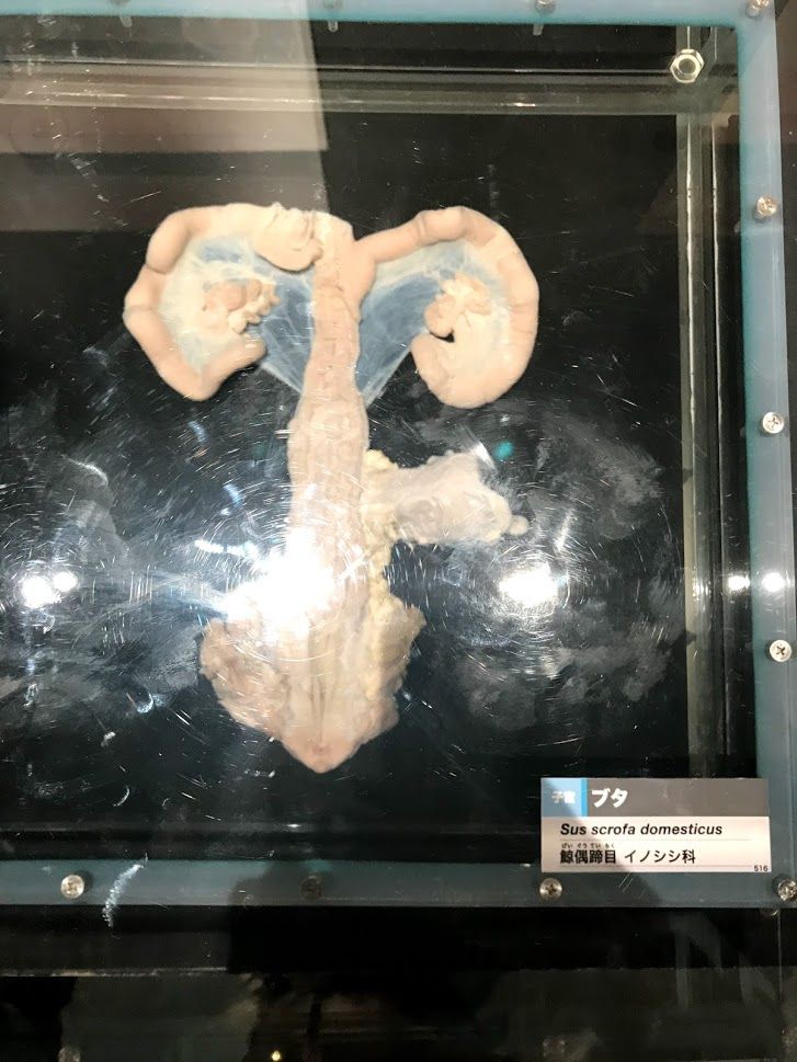 生息環境に適応した結果、生殖器にも自分のコドモを残すための手段が進化した哺乳類の展示。陰茎骨と子宮の実物展示、胎盤と子宮の説明について見てきました。